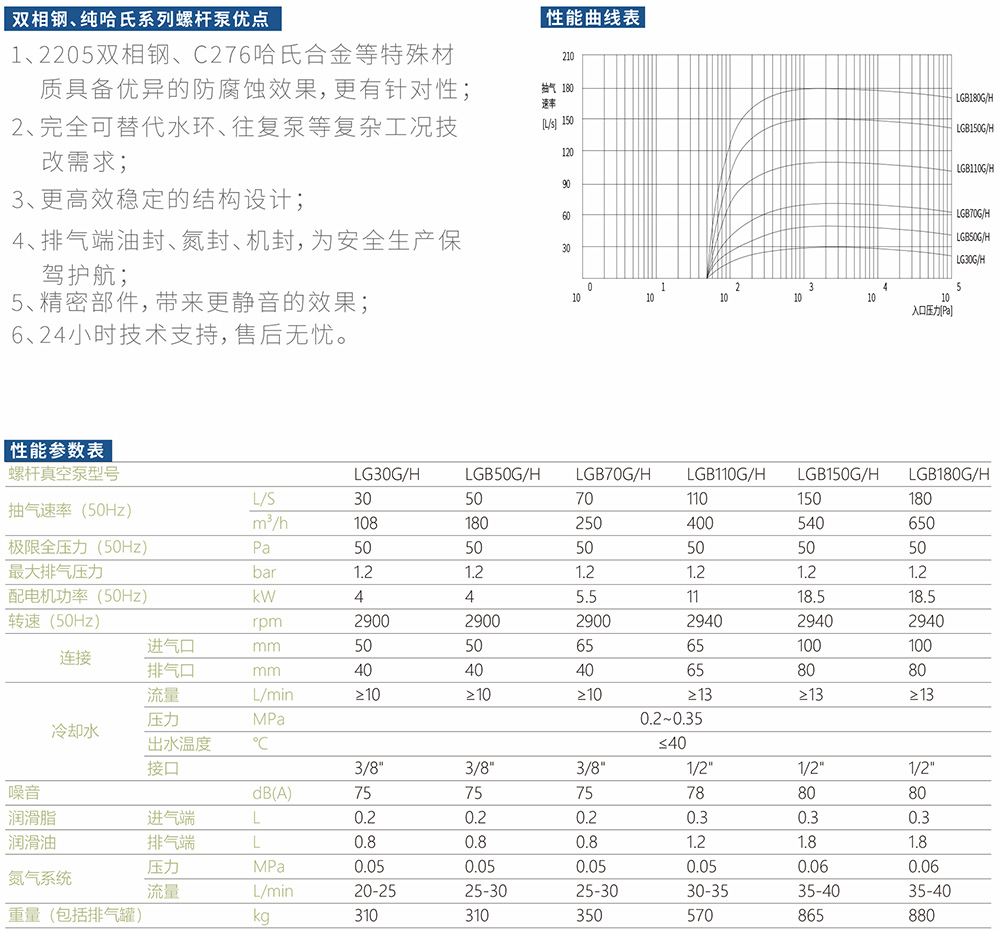 As mechanical tyoe vacuum pump equipped with a pair of constant pitch screws in pump housing, LG series screw vacuum pump canrealize the gas intake and exhaust by the synchronous rolation of the two screws in high speed. The two dynamic balanced screws aresupported by bearings and installed within pump chamber. There are clearances between the two screws and the pump housing, sothe pump operation can be smooth and with a low noise and free of lubricant in the pump chamber. The dry screw pump can be usedto pump the gases that contain a mass of vapor and a small guantily of paricles. lt is also an environmentally friendly andand it is theenergy-saving vacuum pump. Generaly the pump has the advantages in energy conservaion and easy maintenances, updated vacuum pump replacing an oil seal vacuum pump, liquid-ring vacuum pump and reciprocating vacuum pump。
