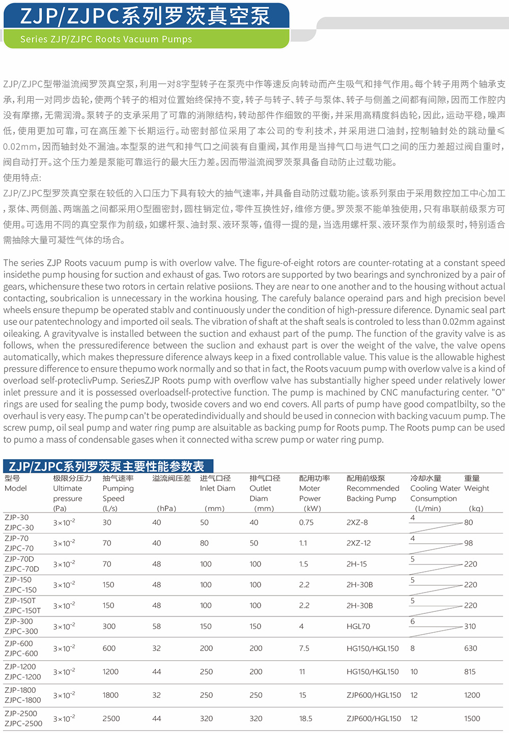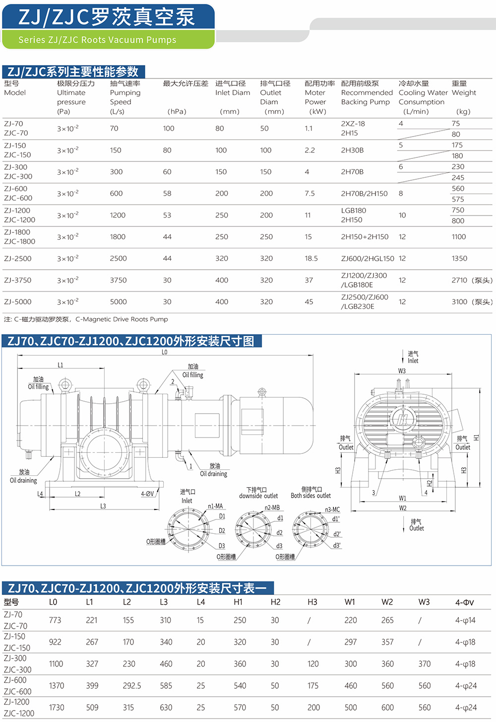 Roots Vacuum Pumps / ZJ、ZJC、ZJP、ZJPC、ZJQ、ZJA、ZJB